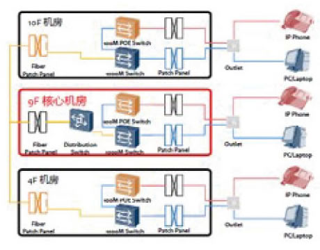 The client is the headquarter (Beijing) of a Japanese manufacturer in China. All the material used in the cabling is selected from the products of CAT6 of PANDUIT, and the trunk lines are installed with multi-mode fiber 10G of PANDUIT.